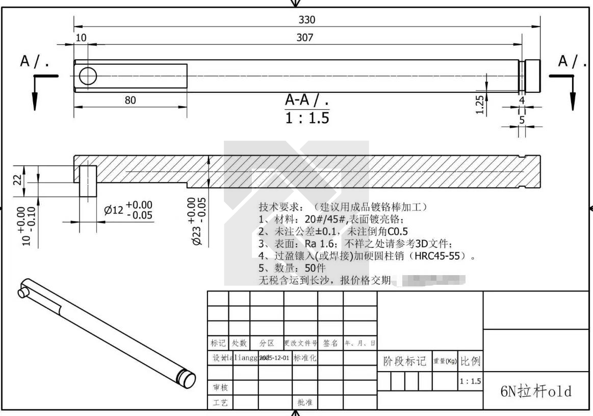 需要如图拉杆加工
