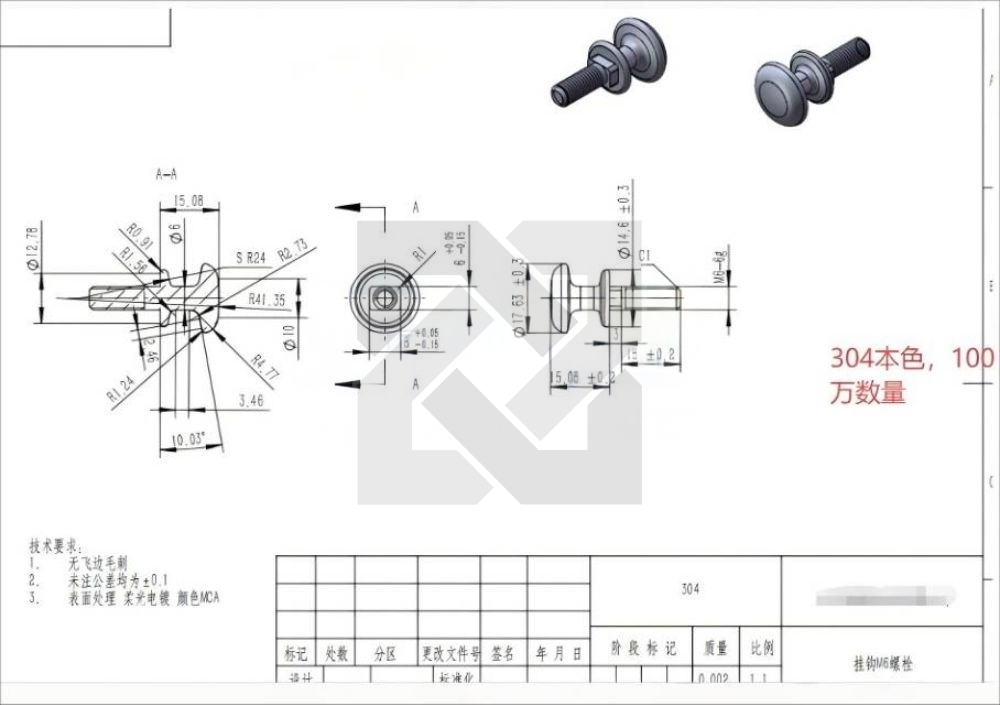如图这款五金螺栓加工