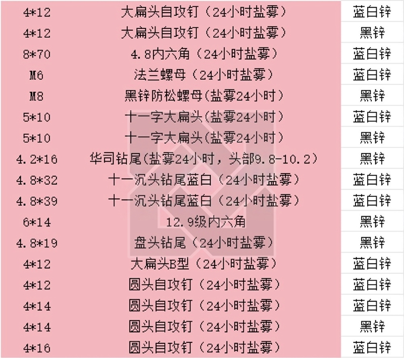 求购一批五金紧固件