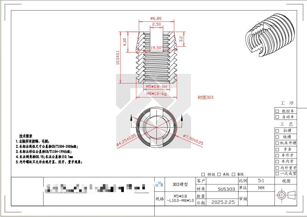 需要如图槽型螺丝件加工